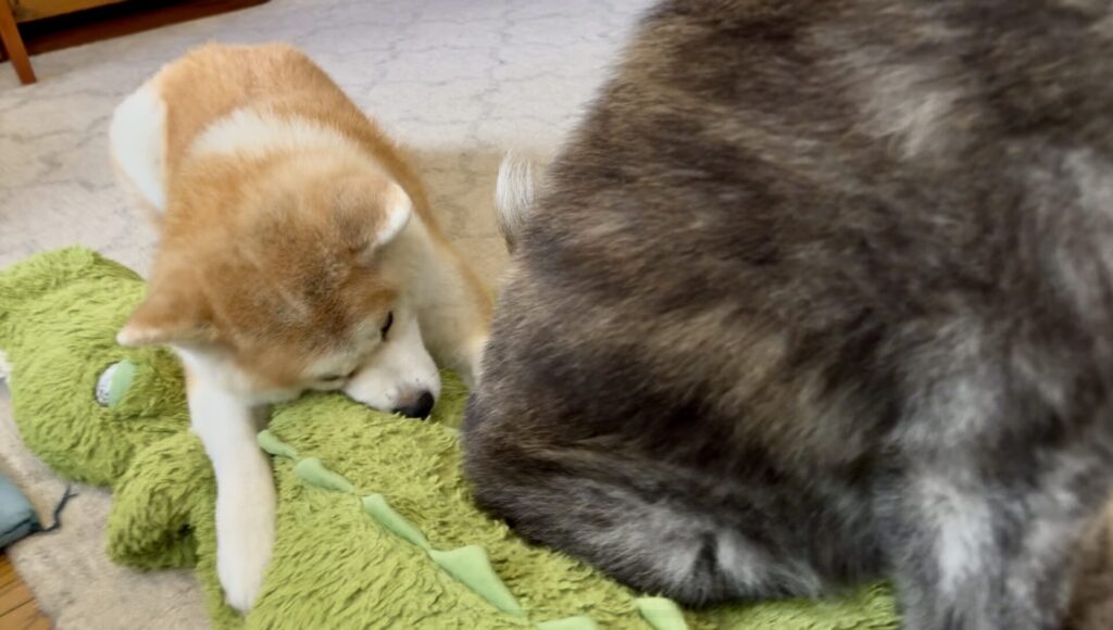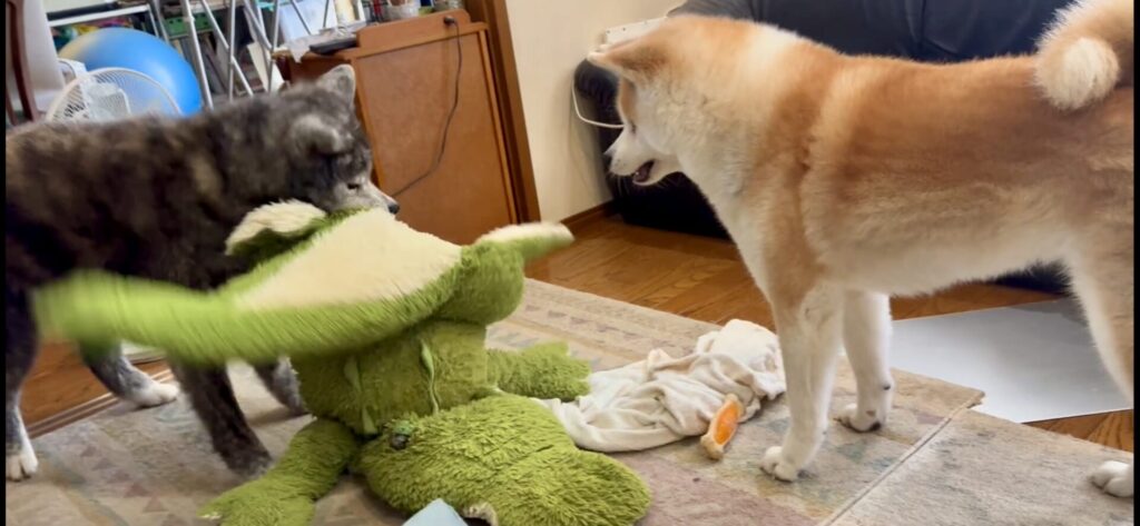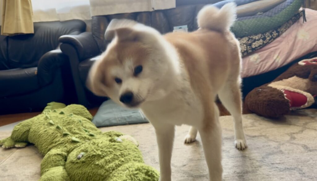 ワニオは取られるわ、水飲みは待たされるわで散々な秋田犬こむぎ【Akita-inu】
